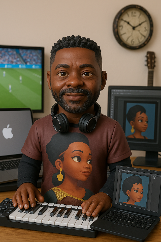 Bob Kanza est un créatif pluridisciplinaire congolais mêlant illustration, communication digitale et musique. Chef de projet multimédia depuis 2015, il est également l’initiateur de la Zkrumba, un style musical fusionnant AfroZouk, Kompa et Rumba congolaise. Il développe actuellement un projet transmédia autour de Babette Motuka AfroQueen, icône afro-futuriste mêlant BD, animation 3D et identité culturelle.